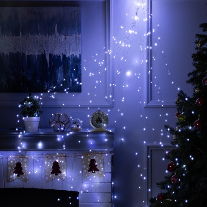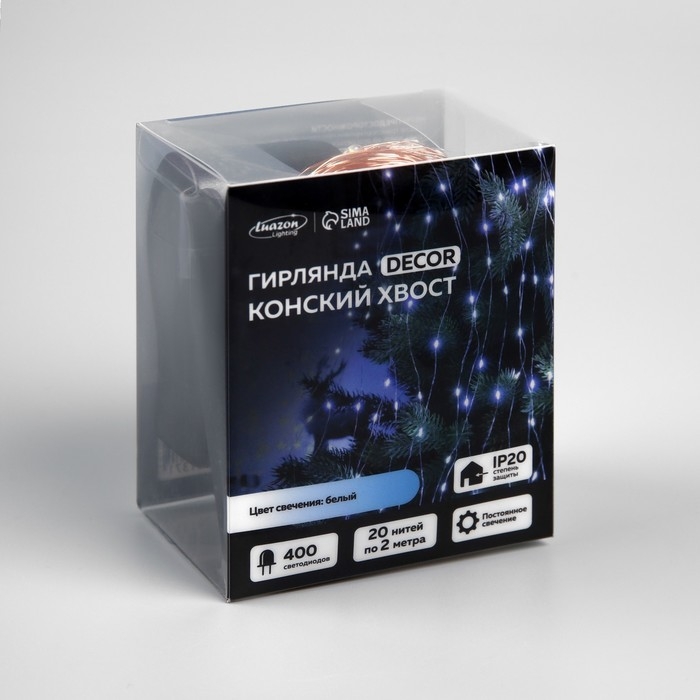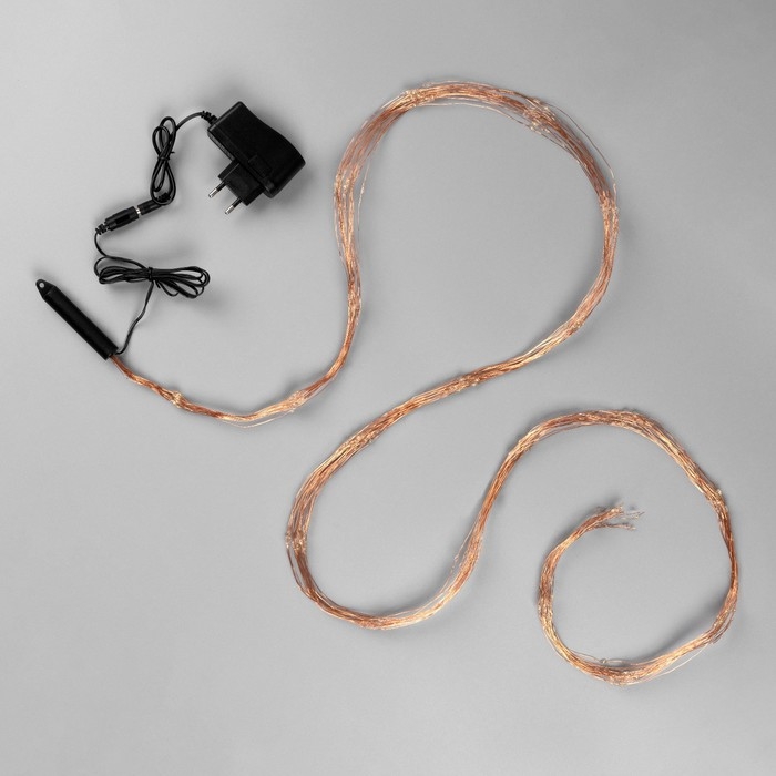 Гирлянда «Конский хвост» 20 нитей по 2 м, нить медная, 400 LED, 12 В, блок питания в комплекте, фиксинг, свечение белое