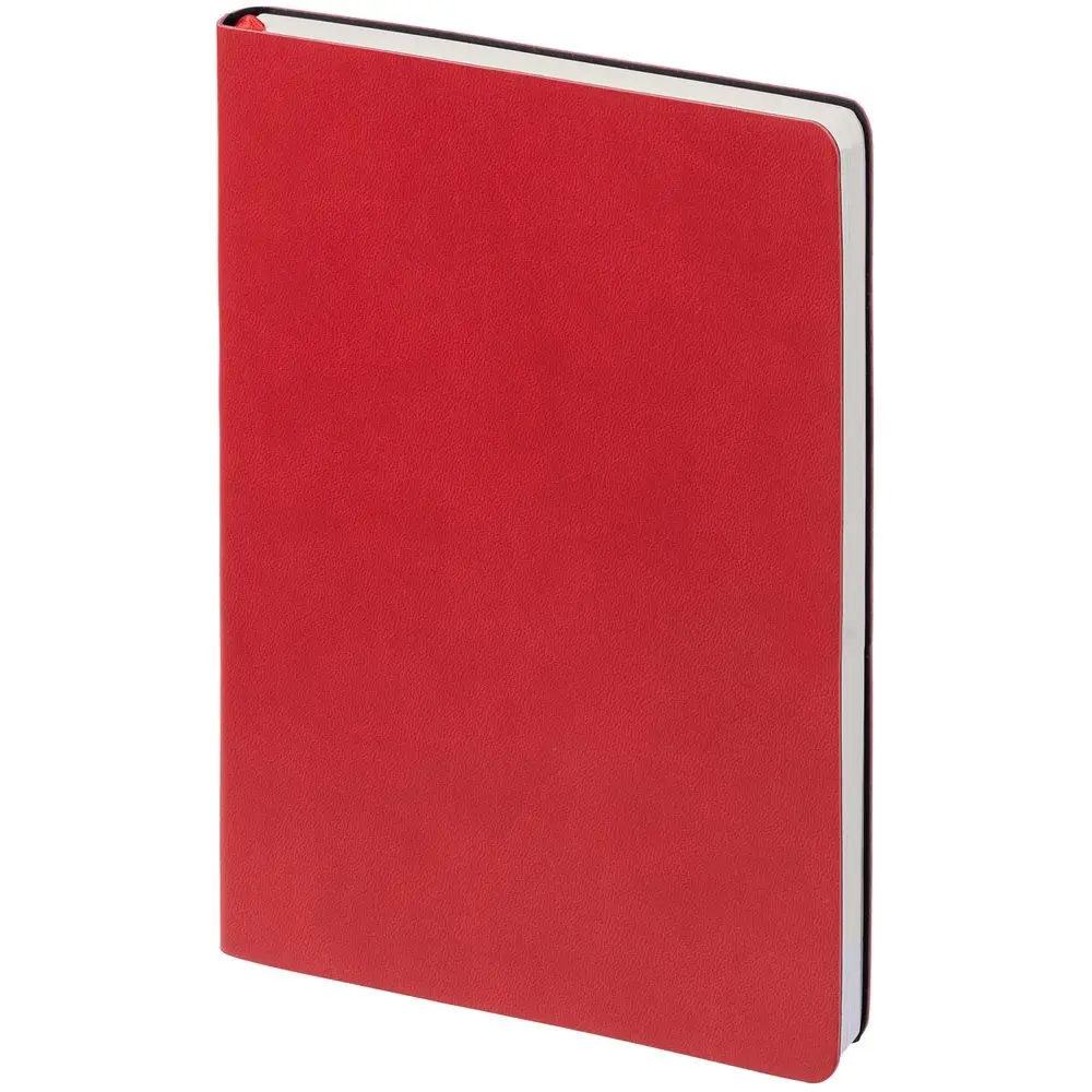 Ежедневник с гибкой обложкой, выполнен из материала Latte, красный, дополнен ляссе в цвет обложки.