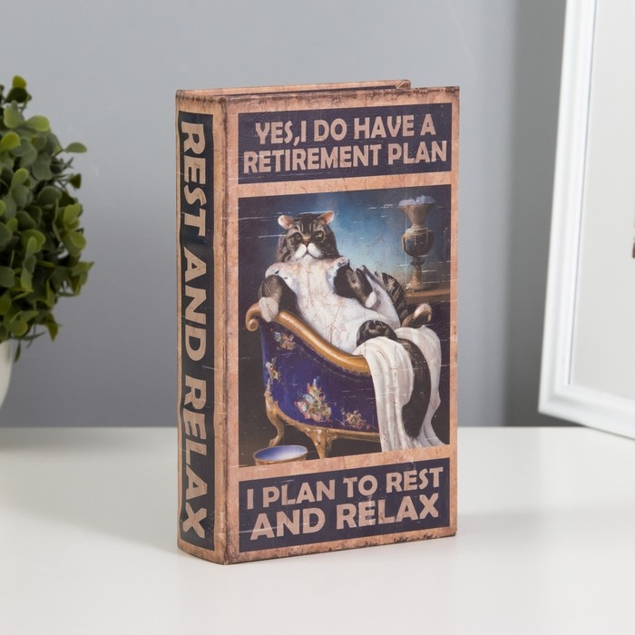 Сейф-книга дерево, кожзам "Кот в ванне. Пенсионный план" 21х13х5 см