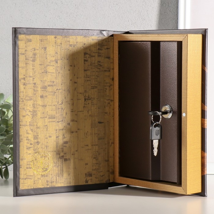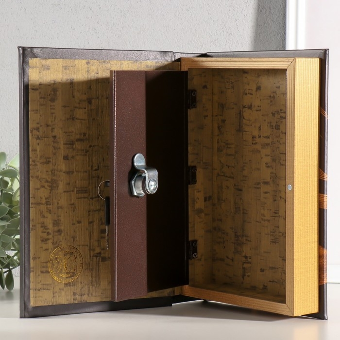 Сейф-книга дерево, кожзам, зеркало "Девушка в шляпке" 24х16х5 см