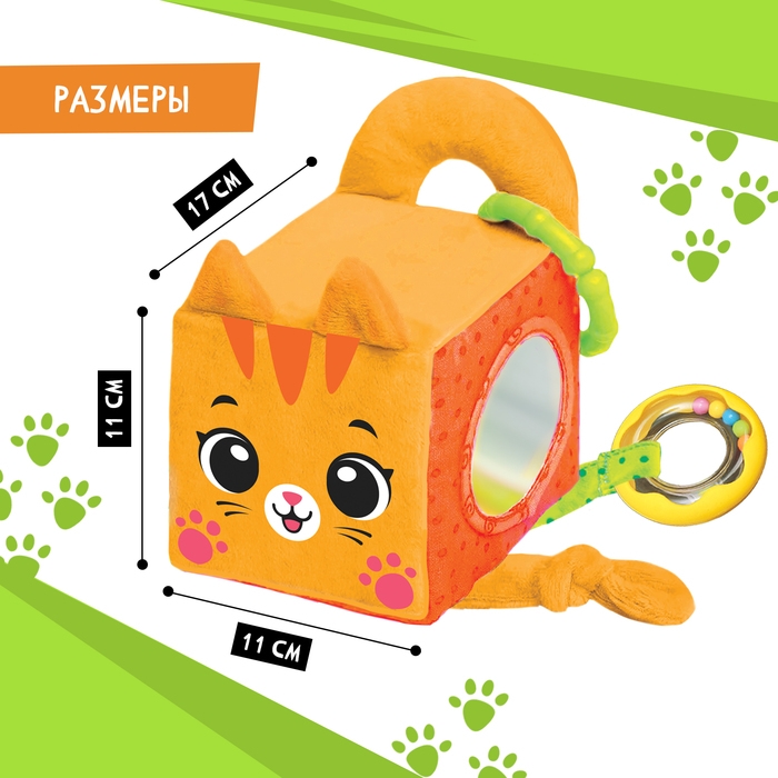 Развивающая игрушка «Кубик: Котик», с прорезывателем, шуршит и звенит