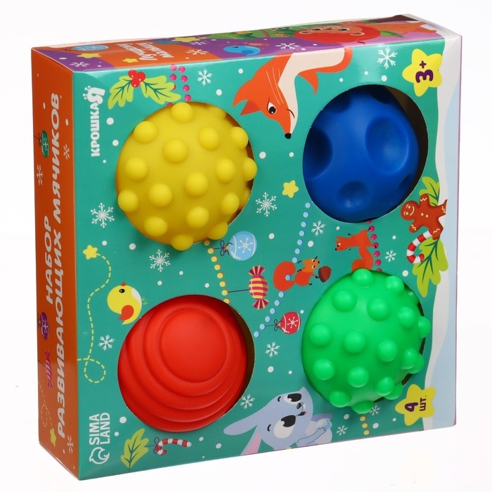 Подарочный новогодний набор развивающих тактильных мячиков «Подарок малышу», 4 шт.