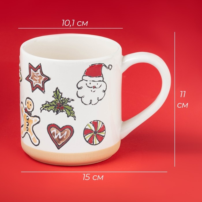 Новогодняя кружка для чая Доляна Sweet Treats, 650 мл, 15×10×11 см, керамика, цвет белый