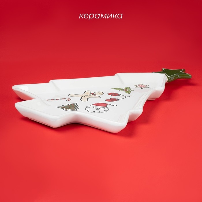 Тарелка новогодняя Доляна Sweey Treats, 37,5×28×2,5 см, керамика, цвет белый