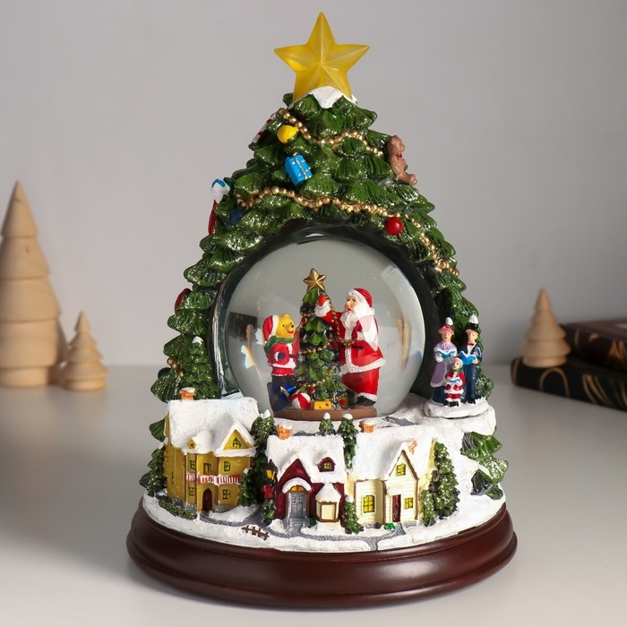Сувенир полистоун водяной шар музыка, свет "Нарядим ёлочку" d=8,5 см 17х17х23,5 см