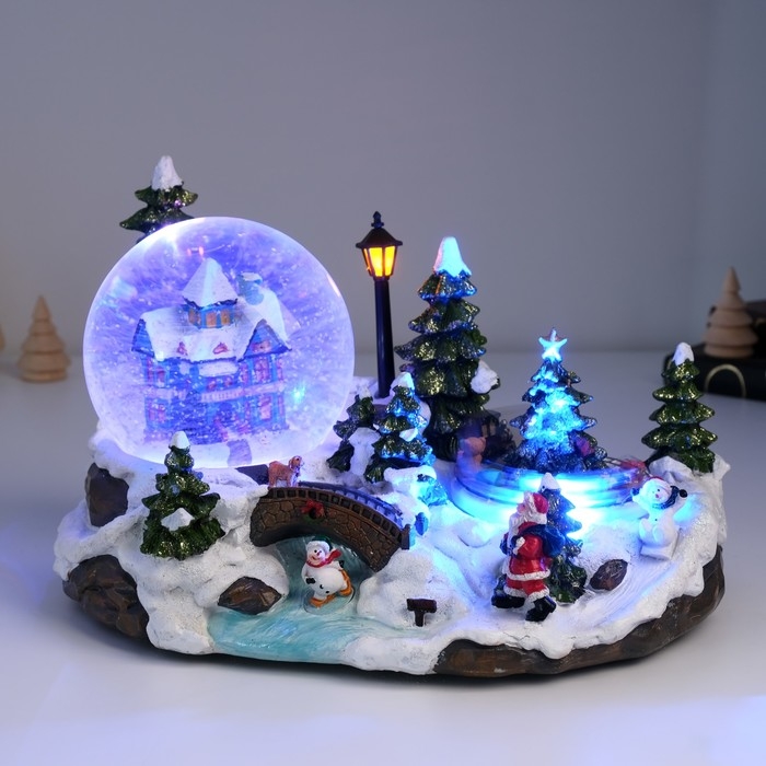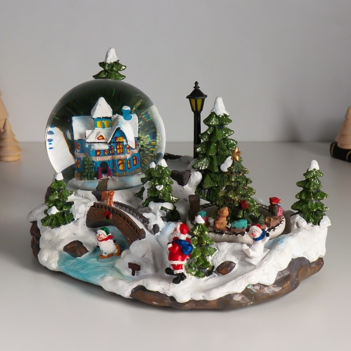 Сувенир полистоун водяной шар музыка, свет "Лапландия" крутится d=10 см 25,5х17х16 см