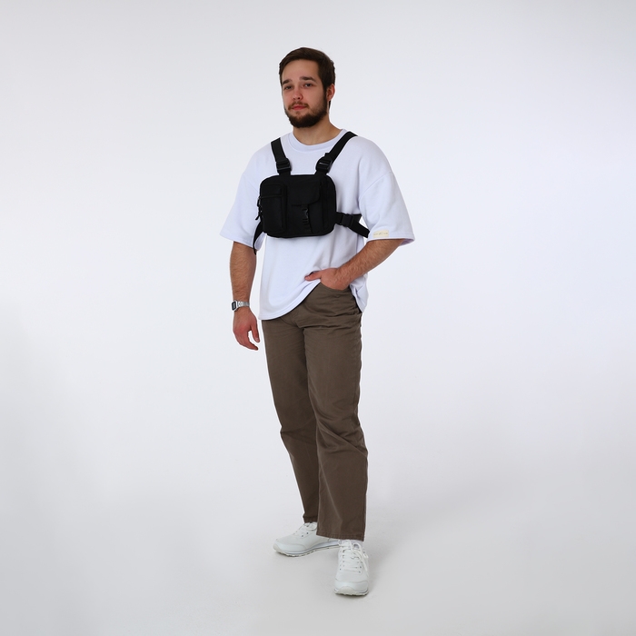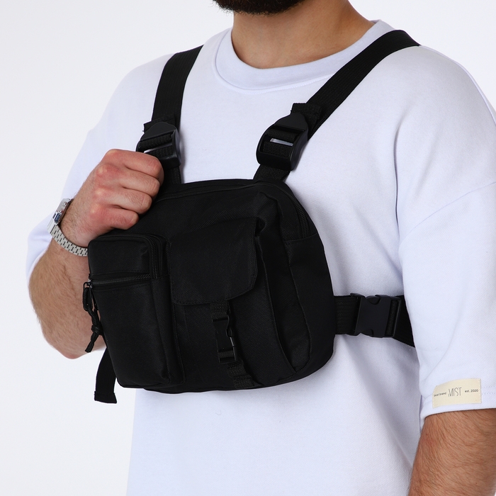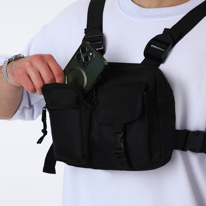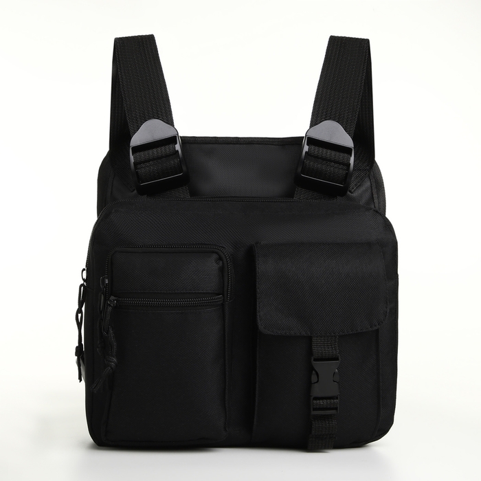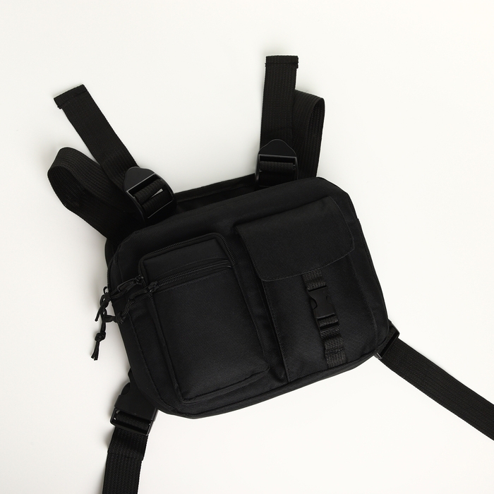 Сумка нагрудная на молнии, 2 наружных кармана, цвет чёрный