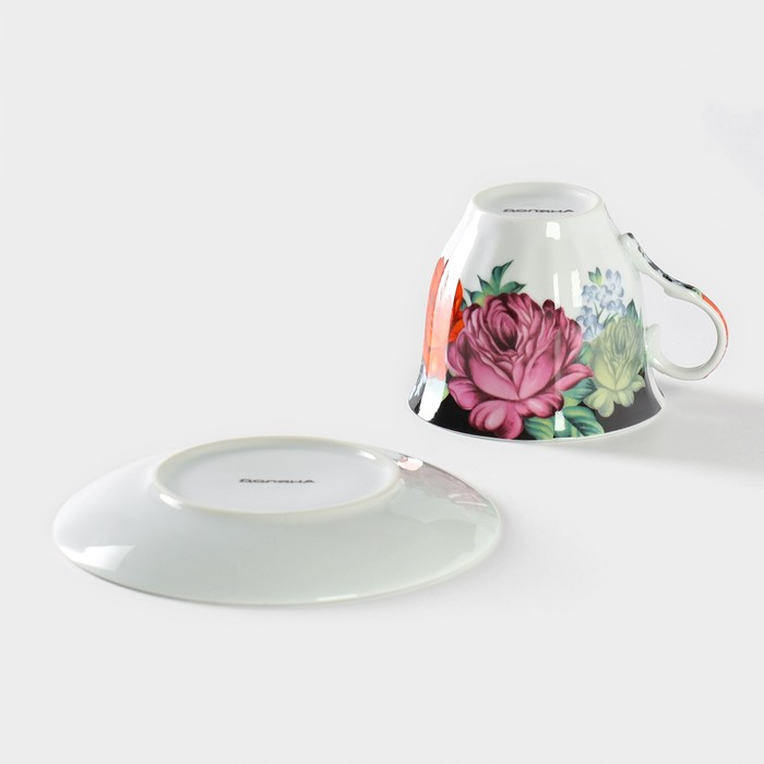 Чайная пара керамическая Доляна «Роспись», чашка 210 мл, блюдце d=14 см
