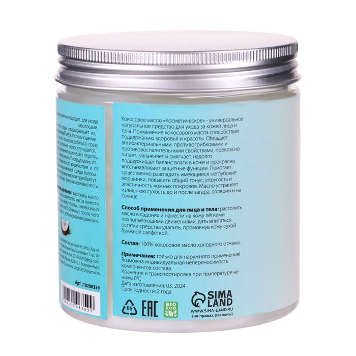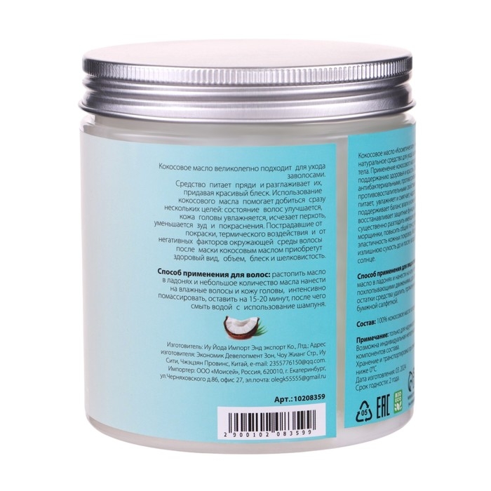 Состав: 100% натуральное кокосовое масло холодного отжима.