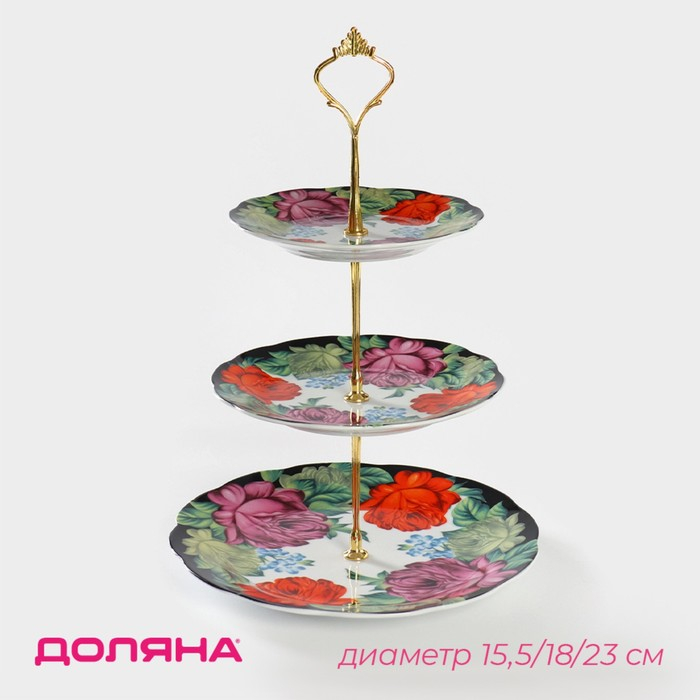 Блюдо керамическое 3-х ярусное Доляна «Роспись», d=15/17,8/22,8 см ㅤ