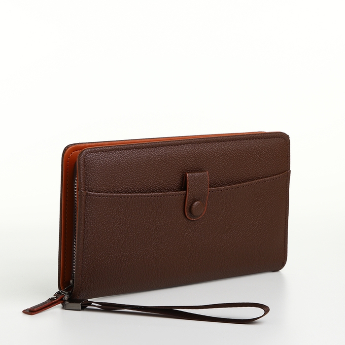 Портмоне-клатч мужской на молнии, цвет коричневый