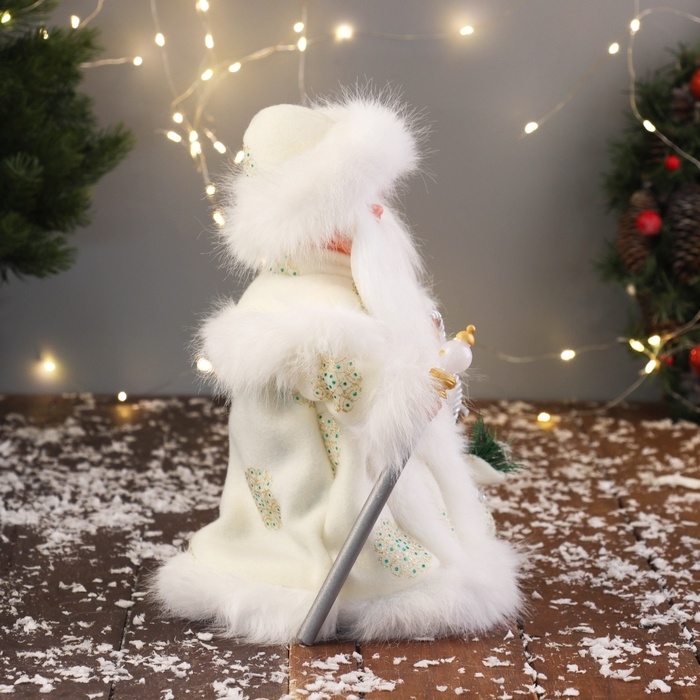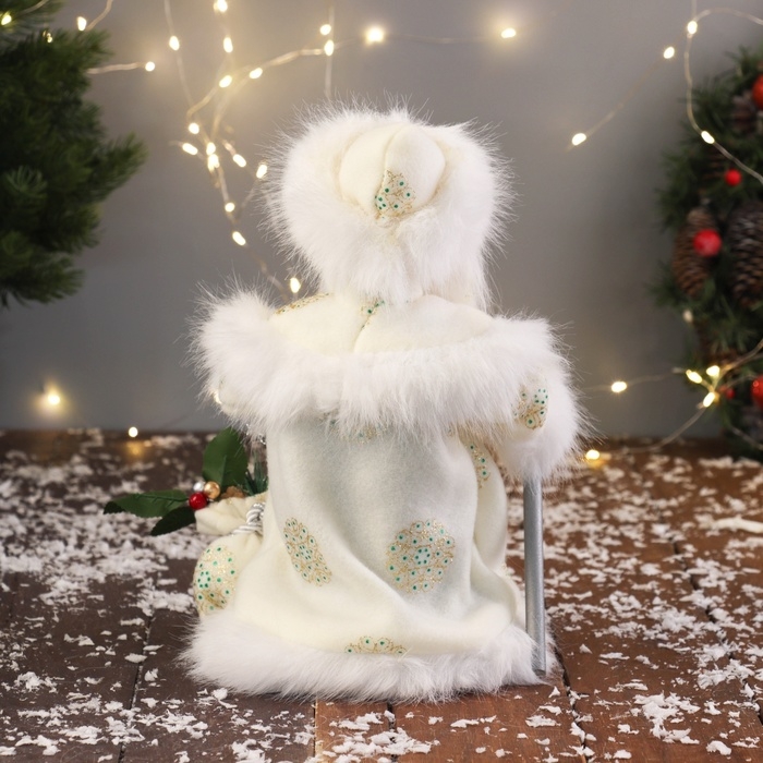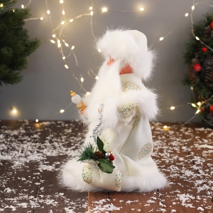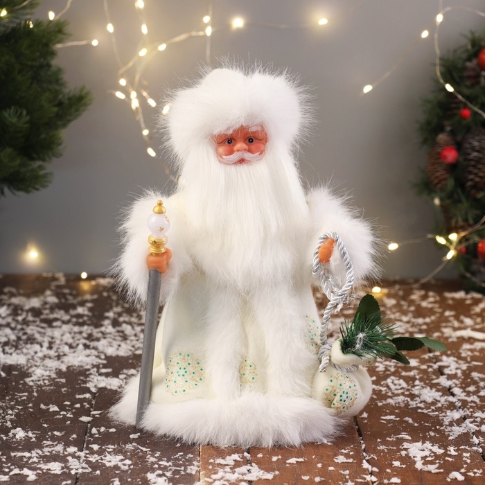 Дед Мороз "В пушистой шубе, с мешком" двигается, 30х19 см, белый