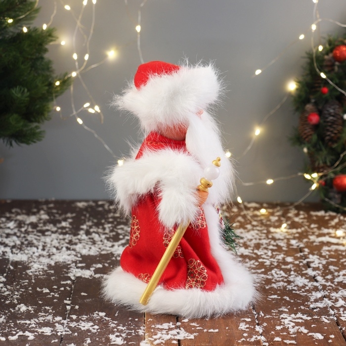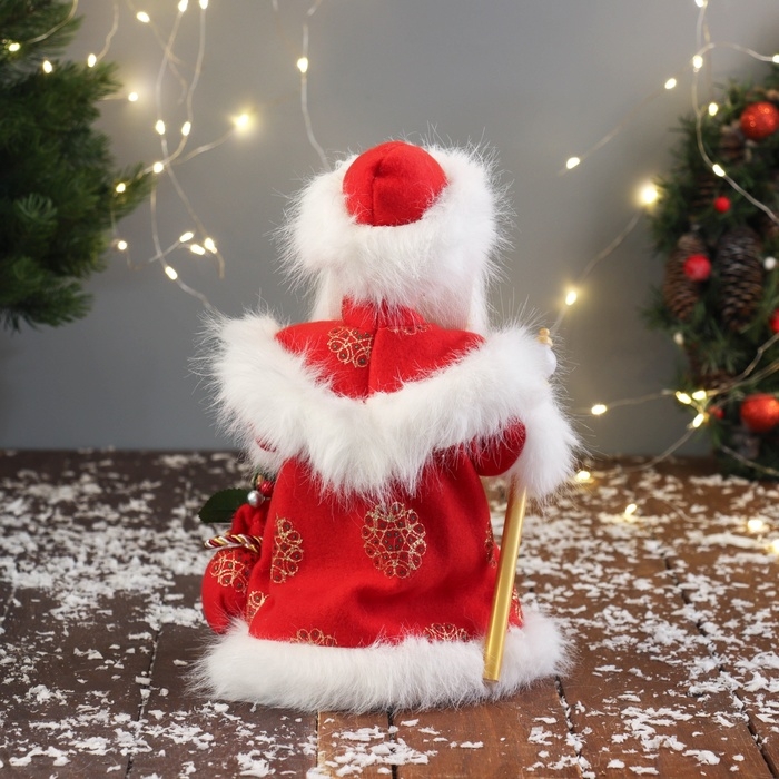 Дед Мороз "В пушистой шубе, с мешком" двигается, 30х19 см, красный
