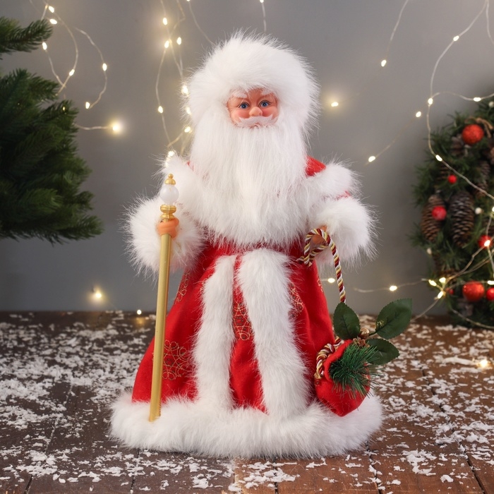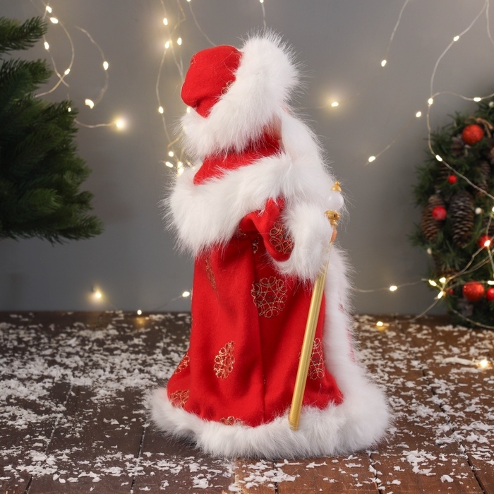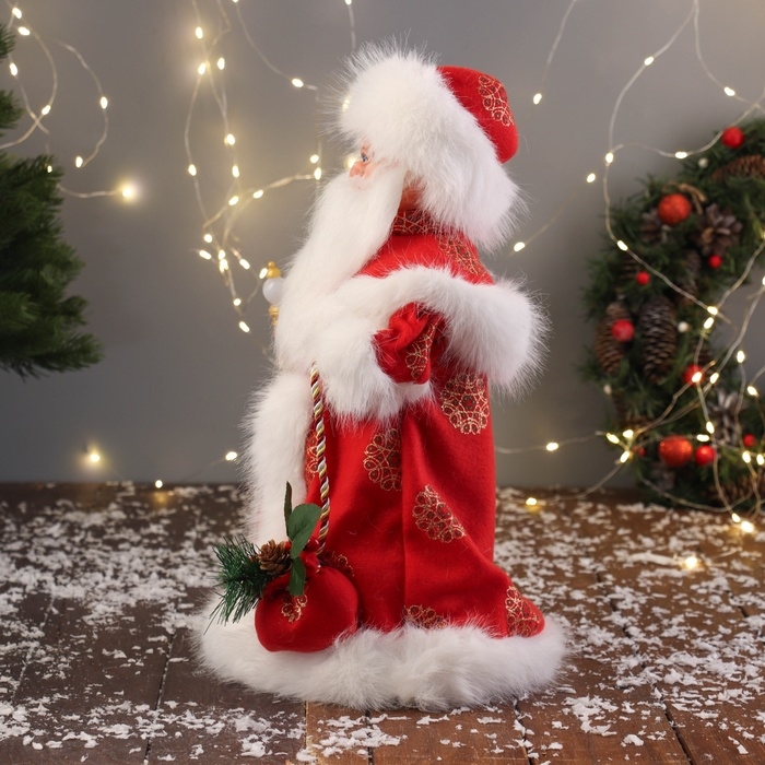 Дед Мороз "В пушистой шубе, с мешком" двигается, 40х22 см, красный