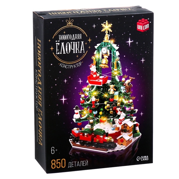 Конструктор «Новогодняя елочка», 850 деталей, с гирляндой