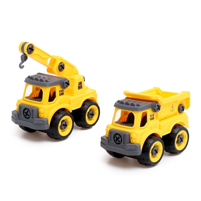 Конструктор винтовой «Строительный транспорт», набор 2 штуки, с отвёрткой, 59 деталей