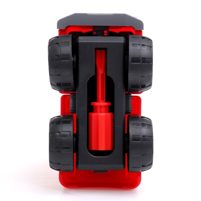 - Задача малыша: вкручивать болтики, разбирать и собирать машинку с помощью игровых инструментов.