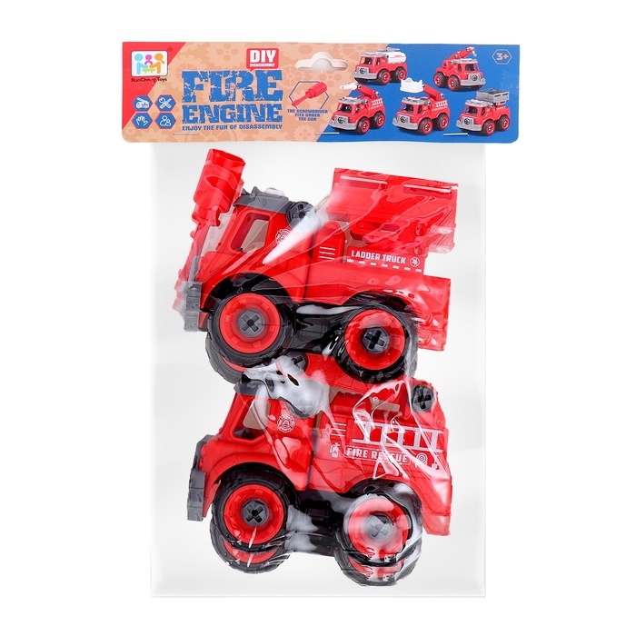 Конструктор винтовой «Пожарный транспорт», набор 2 штуки, с отверткой, 59 деталей