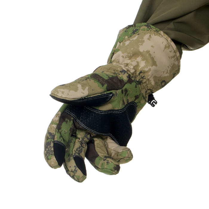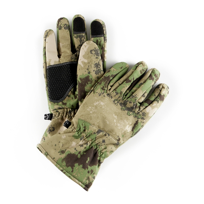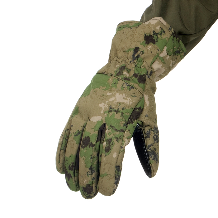 Верхний слой перчаток выполнен из материала софтшелл (Softshell), который широко используется в производстве функциональной одежды для туризма, спорта, охоты и рыбалки. Этот материал сочетает в себе прочность, эластичность, хорошо пропускает воздух и отводит влагу тела, а так же быстро сохнет. Перчатки также оснащены утеплителем из флиса, который сохраняет тепло рук при низких температурах.