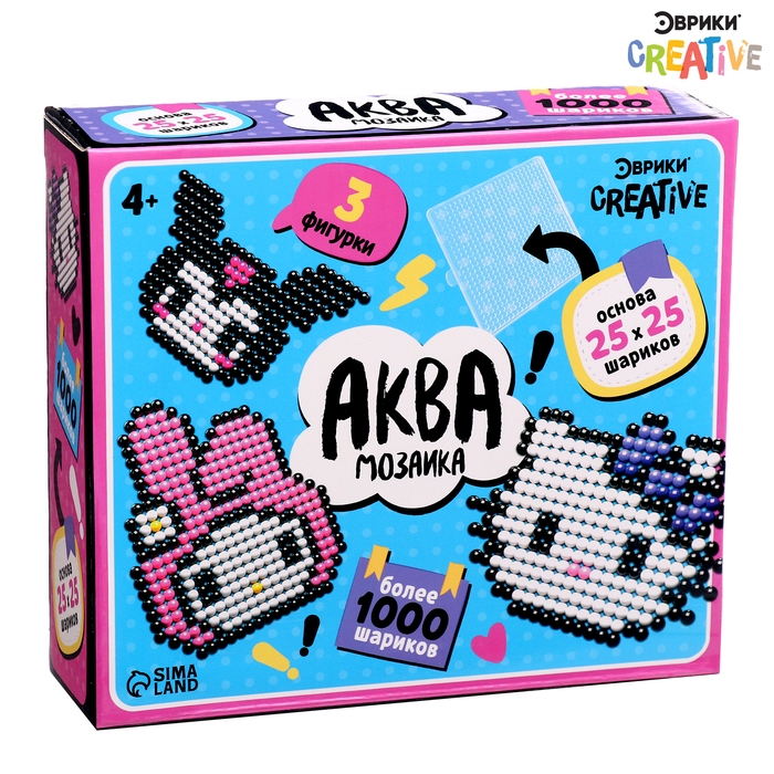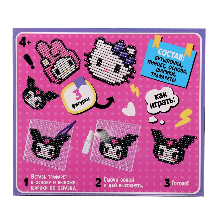 С аквамозаикой «Китти» ребёнок соберёт 3 объёмные фигурки из шариков-пикселей. Детали плотно скрепляются друг с другом. С поделками можно играть или украсить интерьер.