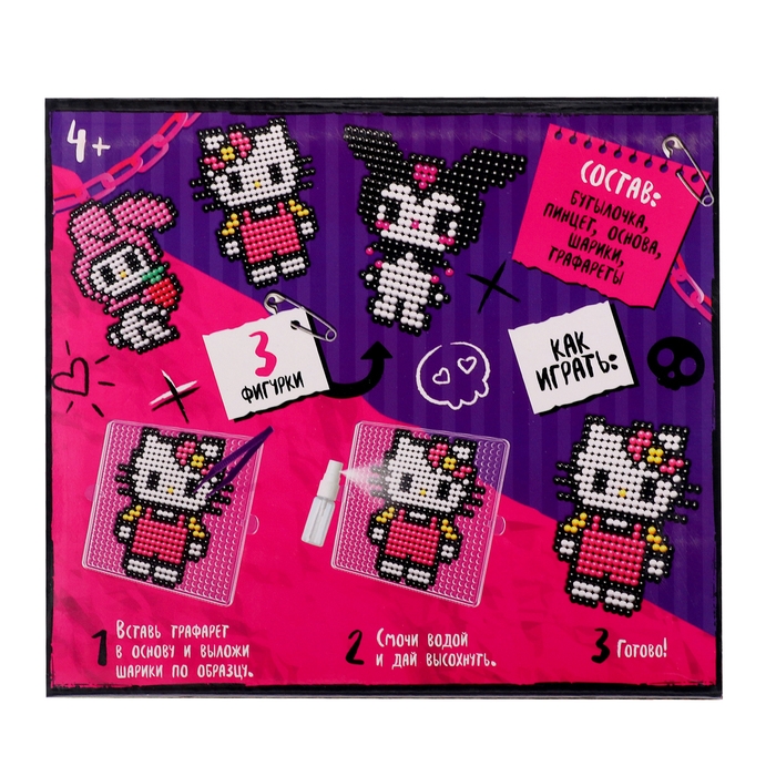 С аквамозаикой «Куроми» ребёнок соберёт 3 объёмные фигурки из шариков-пикселей. Детали плотно скрепляются друг с другом. С поделками можно играть или украсить интерьер.