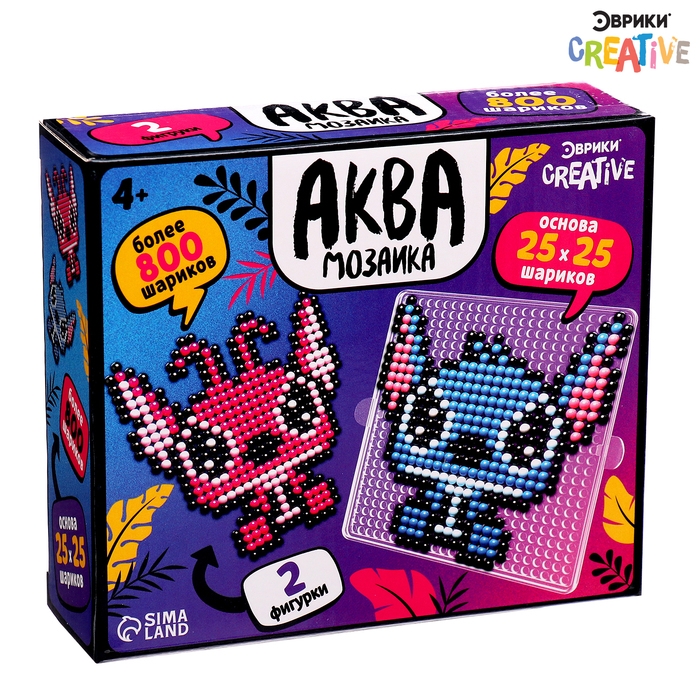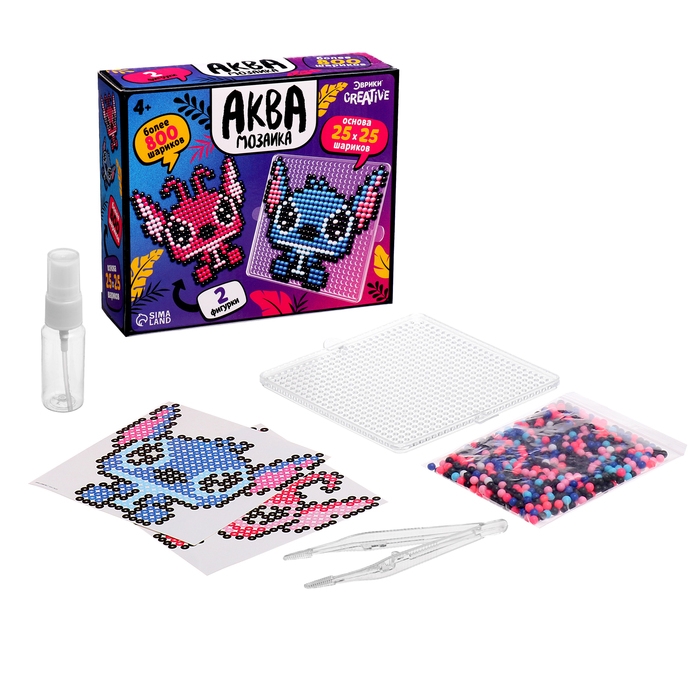 С аквамозаикой «Стич с подружкой» ребёнок соберёт 2 объёмные фигурки из шариков-пикселей. Детали плотно скрепляются друг с другом. С поделками можно играть или украсить интерьер.