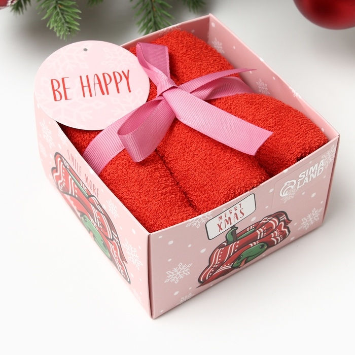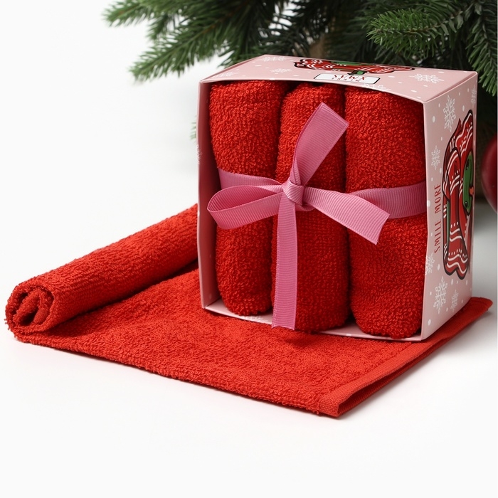 Набор махровых полотенец "Уютная змея" 30х30 см - 3 шт, хлопок 340гр/м2