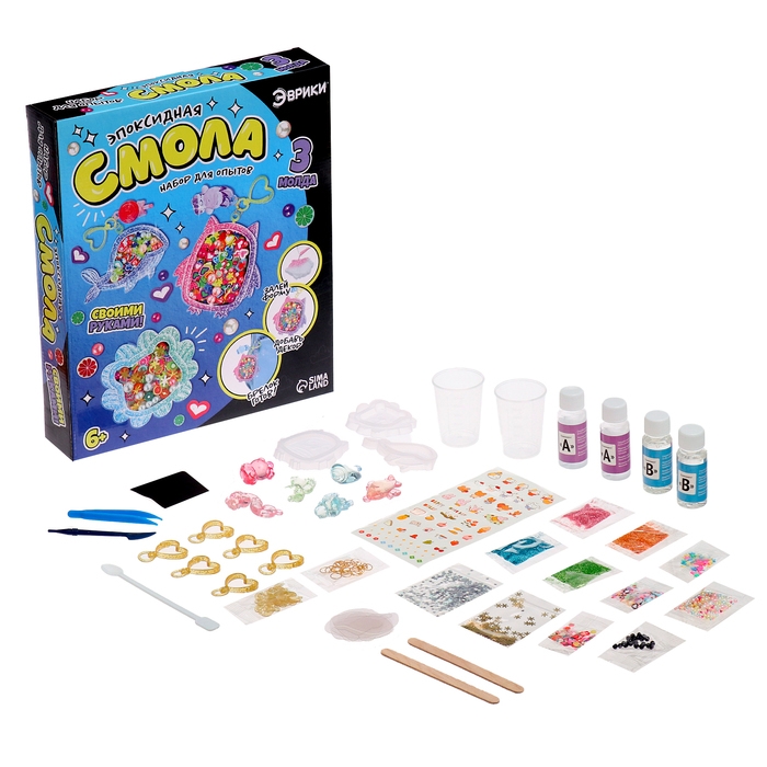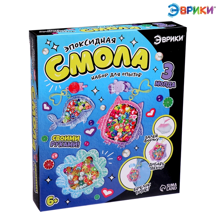 Набор для опытов «Эпоксидная смола» — идеальное решение для занятия творчеством! Ребёнок проведёт увлекательный эксперимент и создаст уникальные брелоки из эпоксидной смолы!