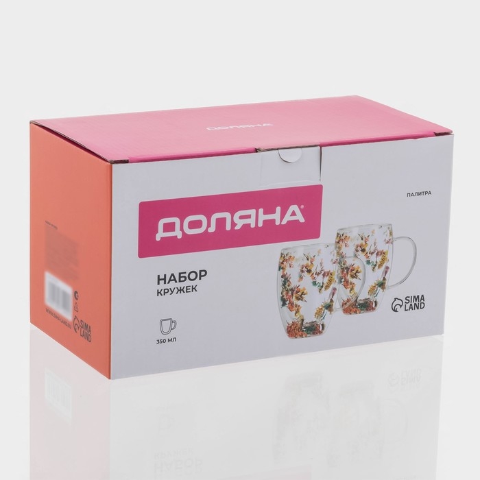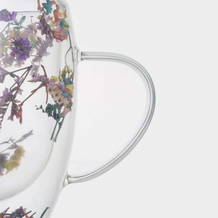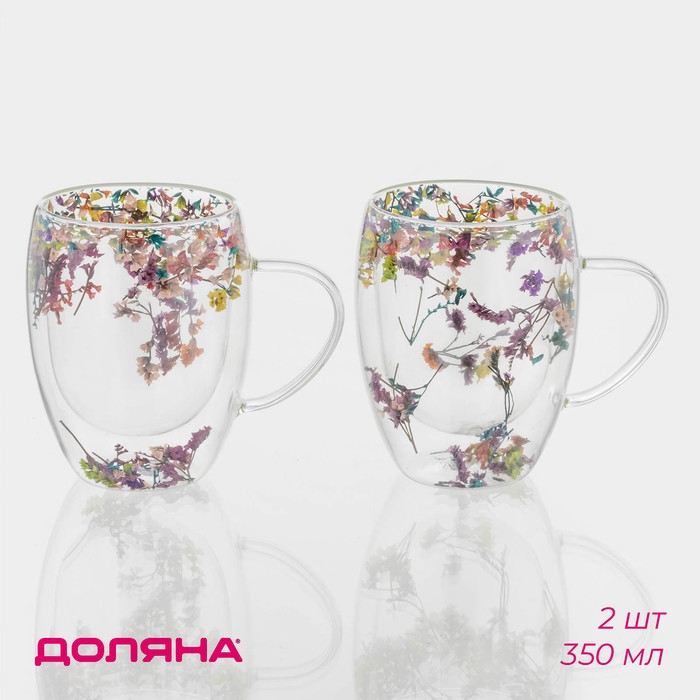 Набор стеклянных кружек с двойными стенками Доляна «Сухоцвет», 350 мл, 12,5×9×11,7 см, 2 шт