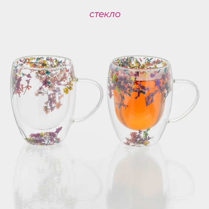 Набор кружек с двойными стенками «Сухоцвет» — идеальный выбор для любителей чая и кофе. Прозрачный дизайн и нежные сухоцветы делают эти кружки изысканными и элегантными. Благодаря вместительности, они подходят для больших порций напитков. Двойные стенки обеспечивают теплоизоляцию и предотвращают обжигание рук.