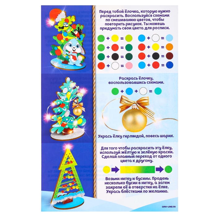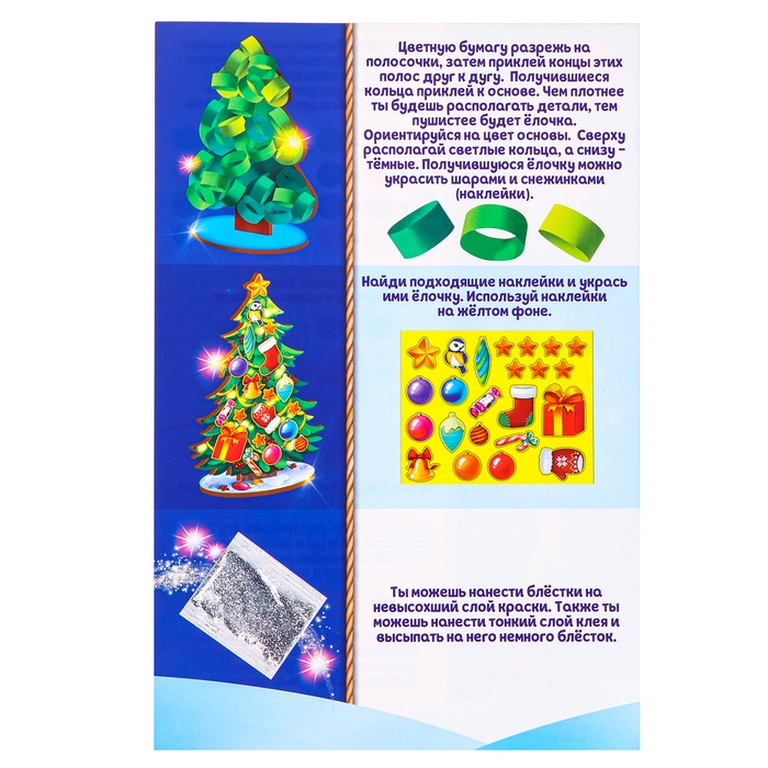 С набором для творчества «Нарядные ёлочки» у ребёнка получится замечательное новогоднее подделка, которую можно подарить друзьям и родственникам. Каждую елочку вы можете украсить по-разному. Воспользуйтесь готовыми схемами или проявите фантазию!