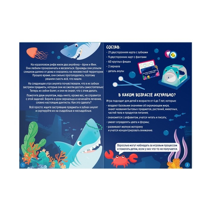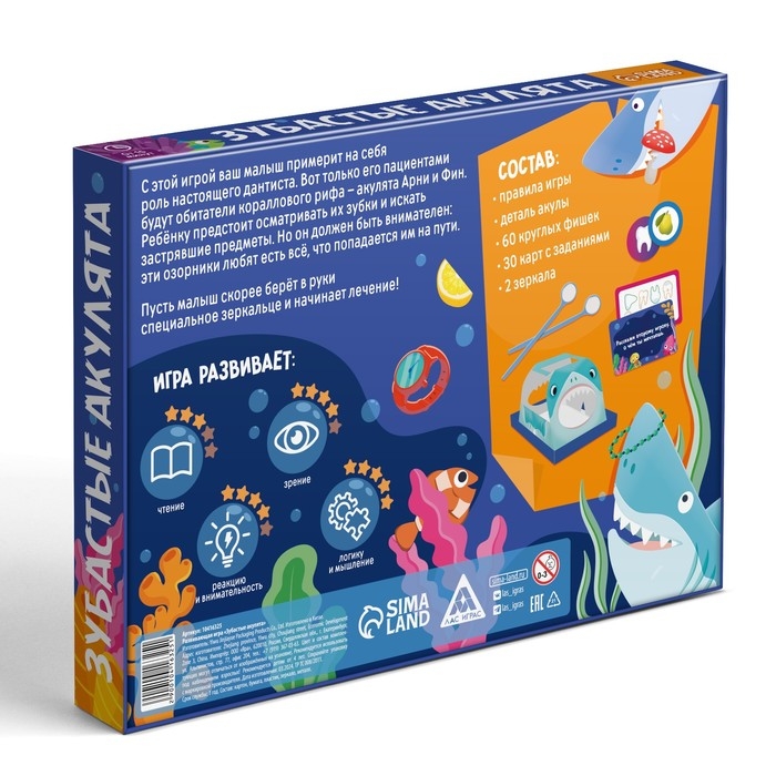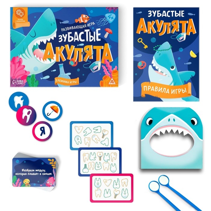 Настольная игра развивающая «Зубастые акулята», 30 карт, 60 фишек, 2 зеркала, деталь акулы, 4+