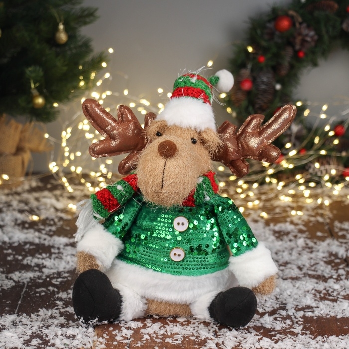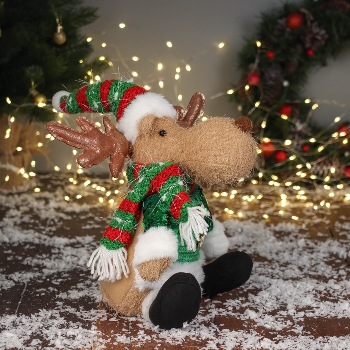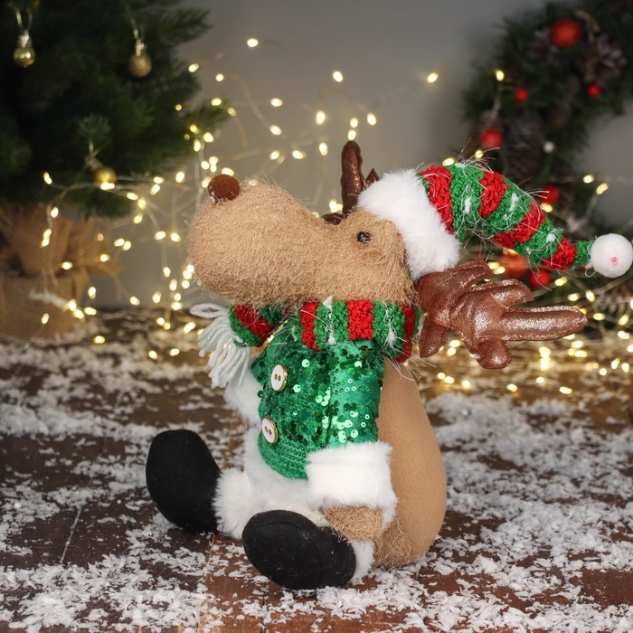 Мягкая игрушка "Олень в полосатом колпаке" сидит, 44х19 см