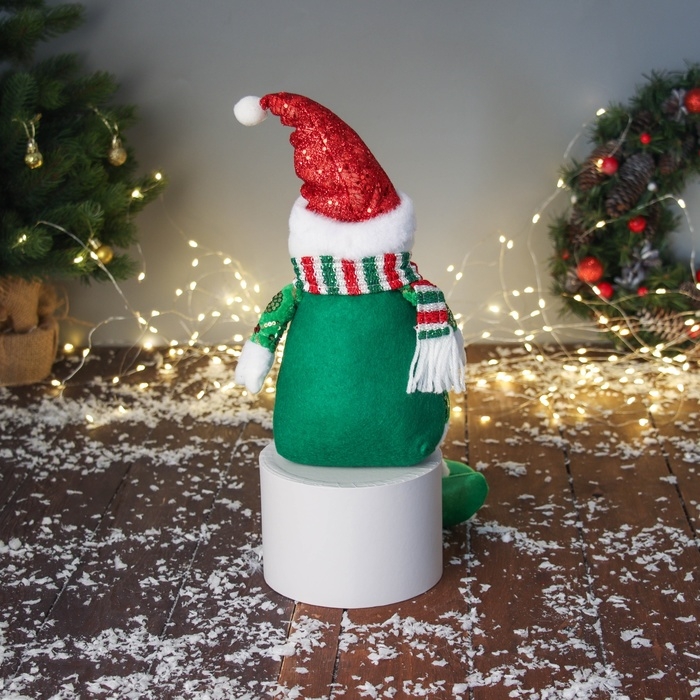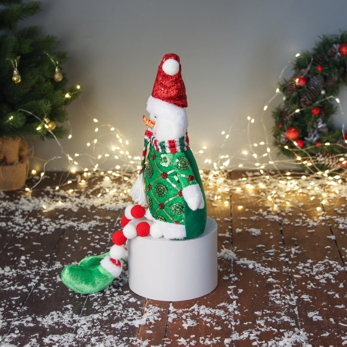 Мягкая игрушка "Снеговик в сияющем костюме и шарфике" 49х19 см, красно-зелёный
