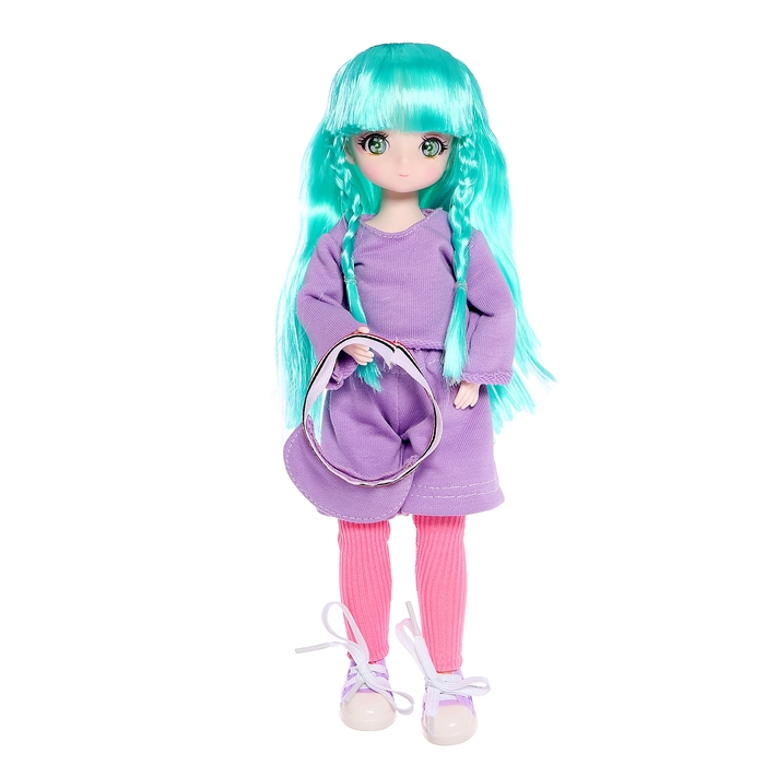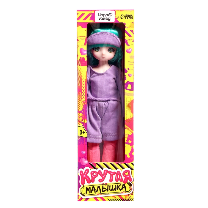 - Стильный козырёк на голове и сиреневые кеды дополняют её образ, делая куклу ещё более модной и современной