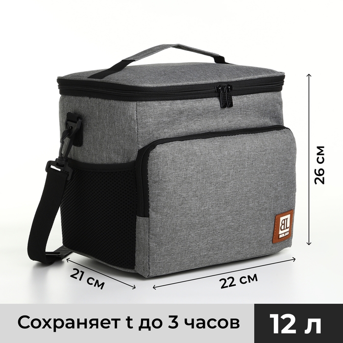 Термосумка на молнии, наружный карман, 12 л, цвет серый