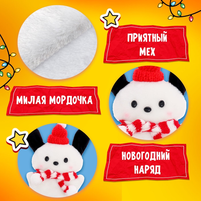 - Мягкая игрушка высотой 14 см с приятным на ощупь мехом станет любимым компаньоном для зимних вечеров. Её милая мордочка и новогодний наряд добавляют особого шарма и делают её отличным украшением для любого интерьера.