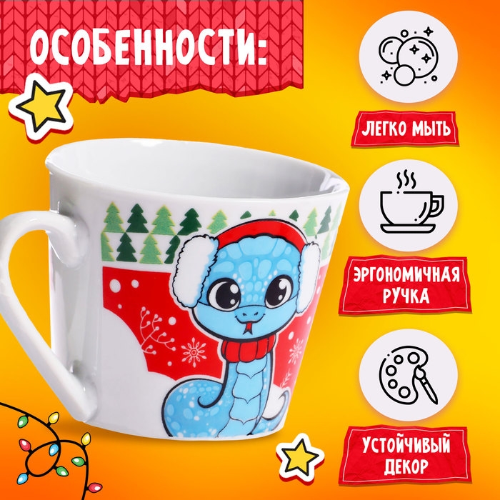 - Устойчивый декор на кружке добавляет новогоднее настроение и делает её стильной частью праздничного стола.
