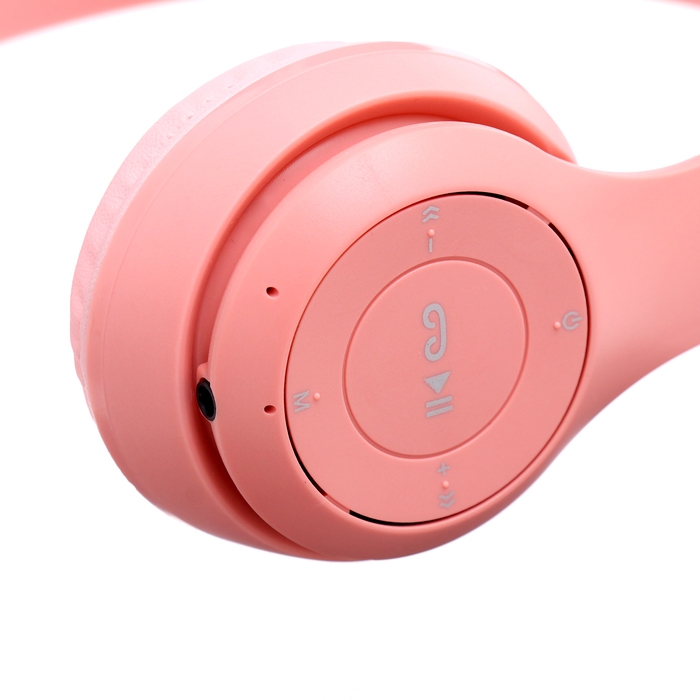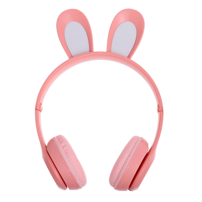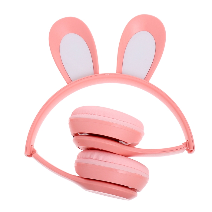Наушники беспроводные «Зайчик», звуковые и световые эффекты, складные, цвет розовый