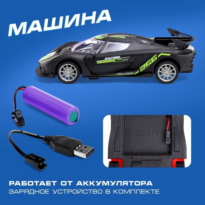 Машина радиоуправляемая «Жажда гонок», работает от аккумулятора, цвет чёрный