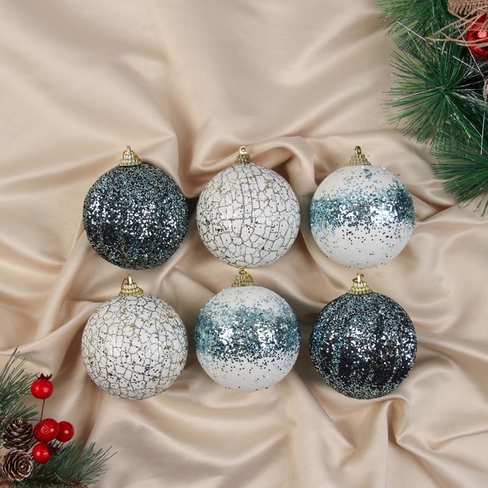 Набор шаров пластик d-8 см, 6 шт "Ксавье" ассорти, бело-синий