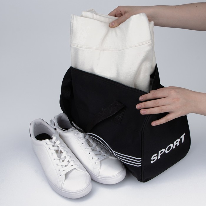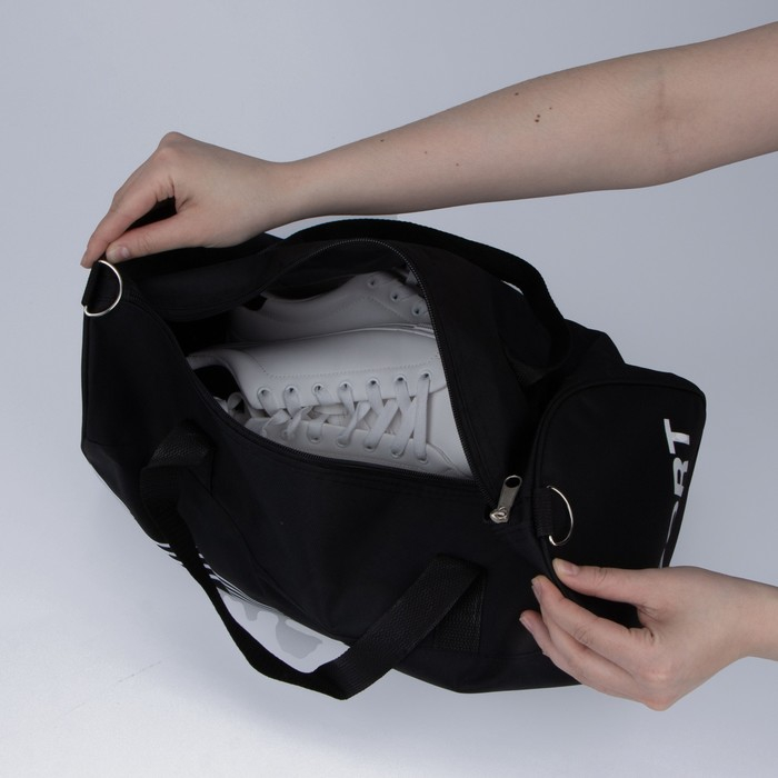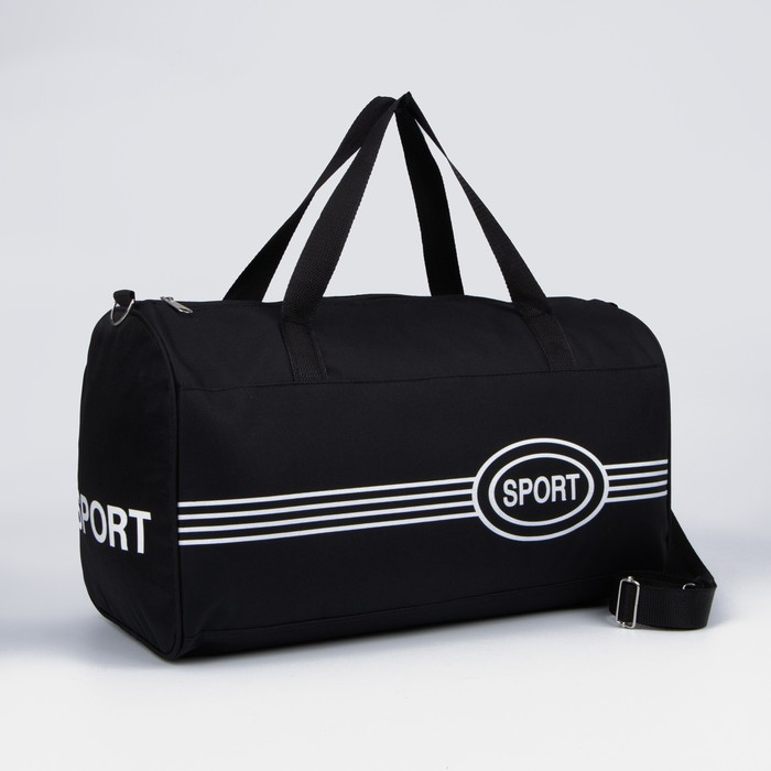 Сумка спортивная на молнии, длинный ремень, средний размер, цвет чёрный