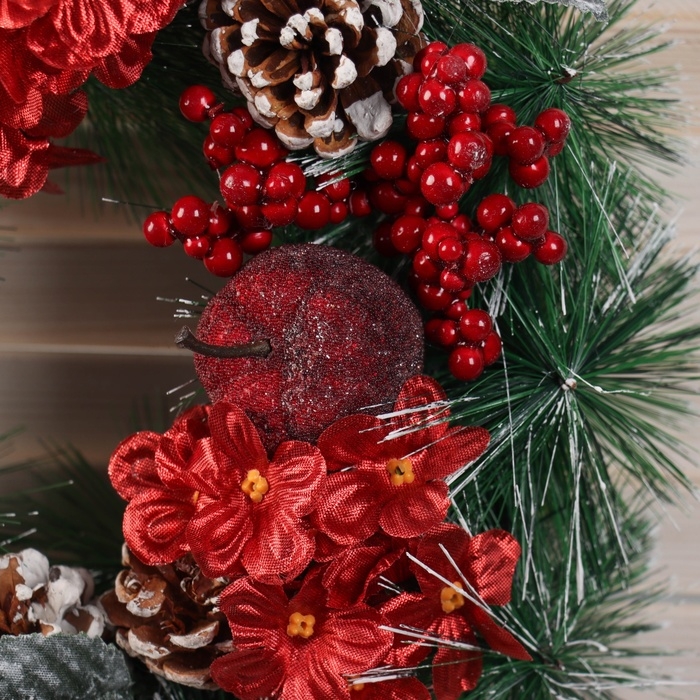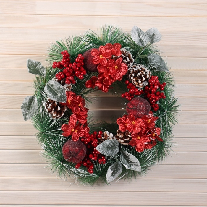 Венок новогодний d-30 см "Лесной фестиваль" мелкие цветы листья