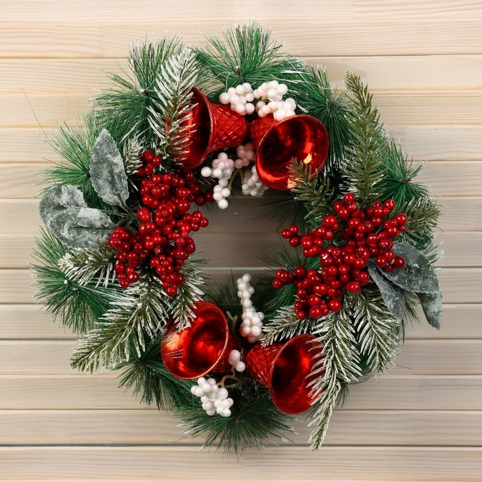 Венок новогодний d-30 см "Лесной фестиваль" колокольчики ягодки