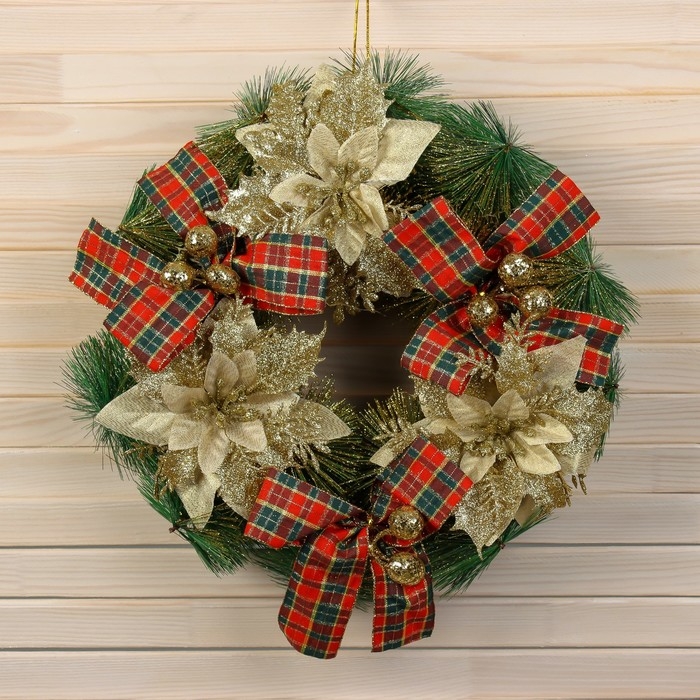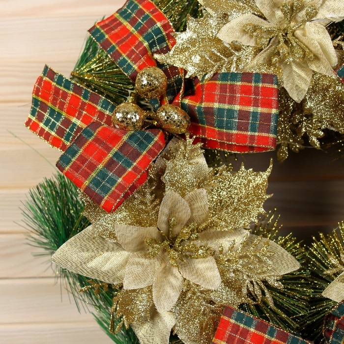Венок новогодний d-30 см "Яркая сказка" банты с ягодами цветы