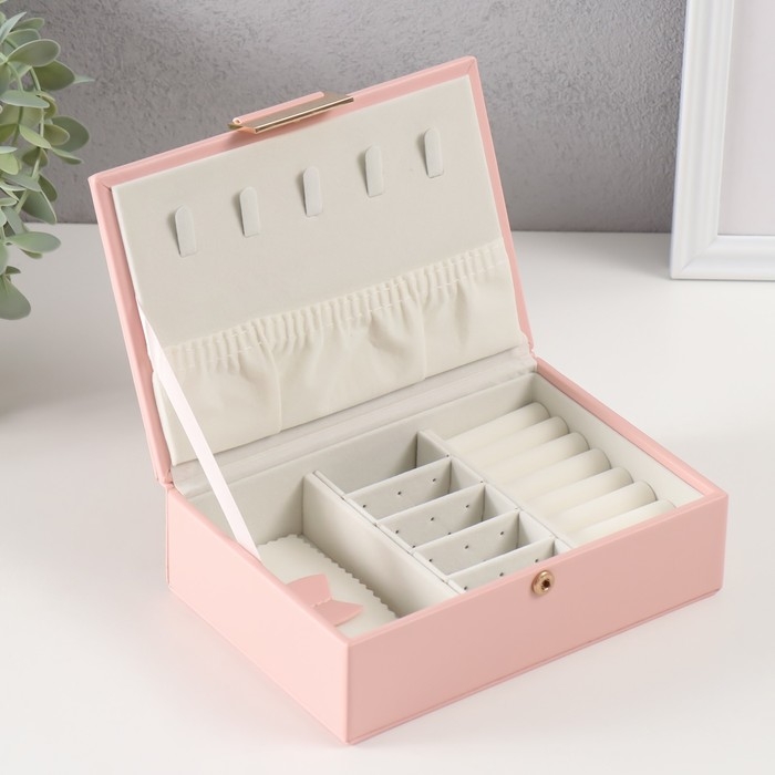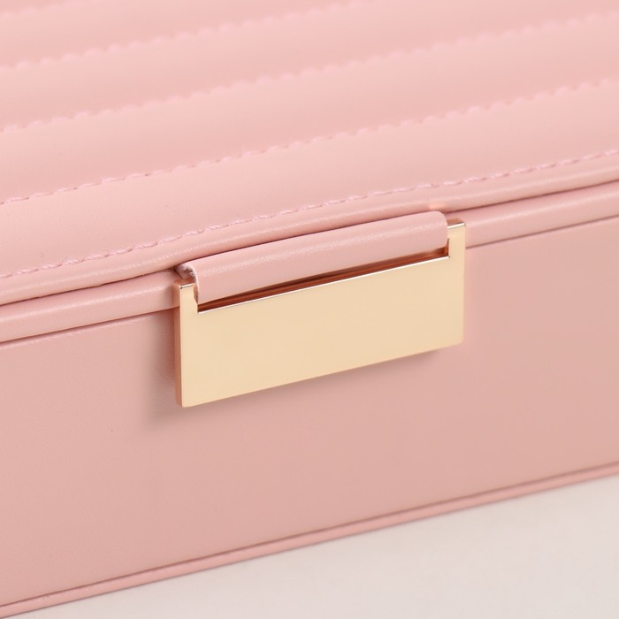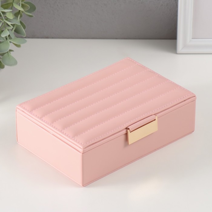 Шкатулка кожзам для украшений "Стёганная. Полоски" розовая 13х18х5,2 см