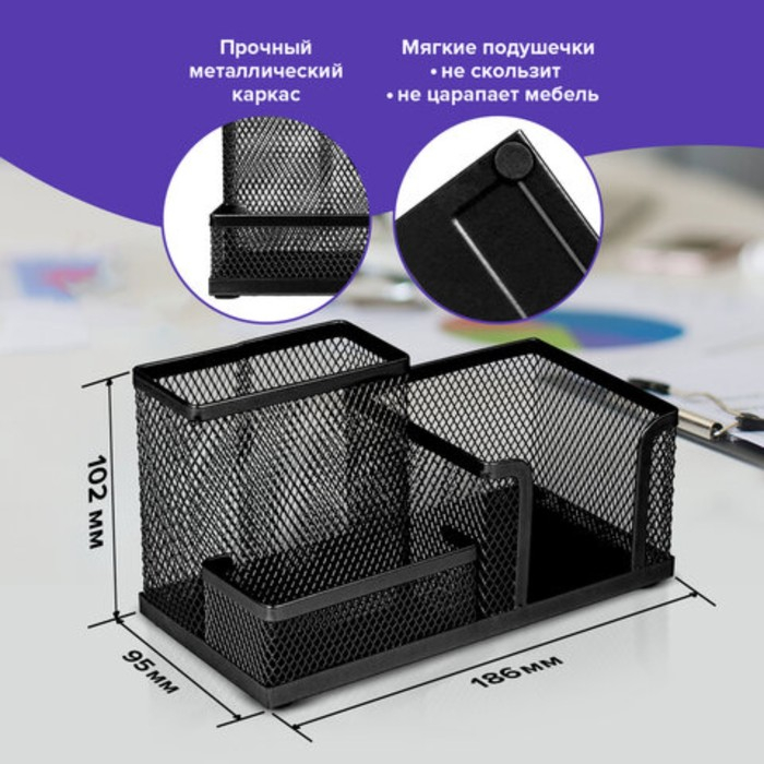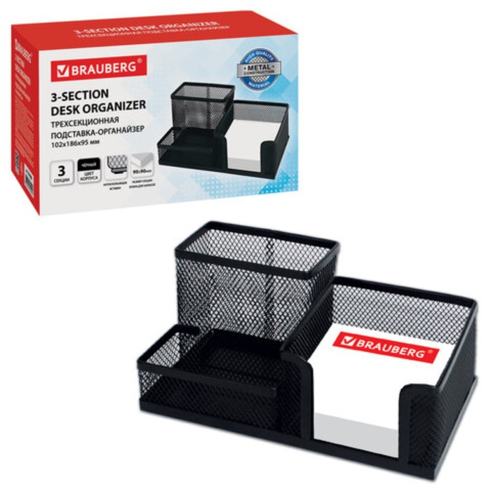 Органайзер BRAUBERG Germanium, 3 отделения, металлическая сетка, чёрный