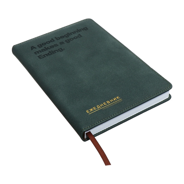 Ежедневник недатированный, А5, 140л, клетка, обл.кожзам, Зеленый