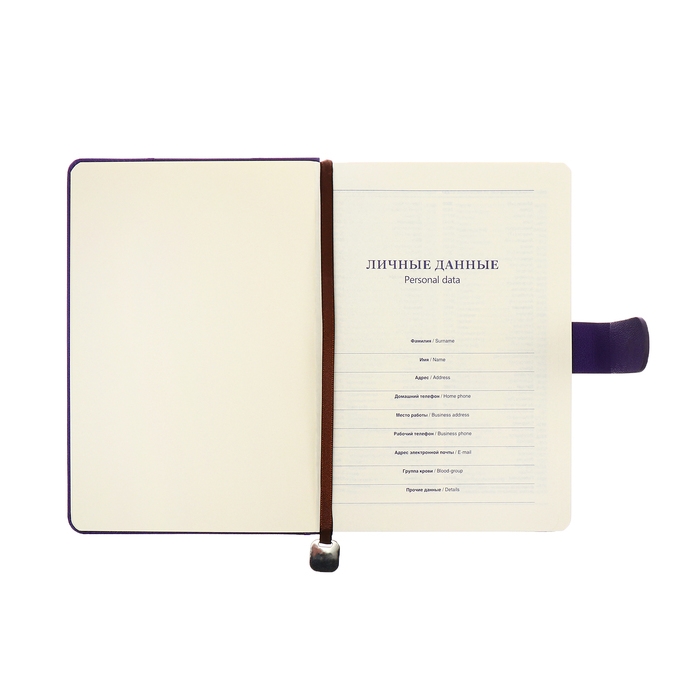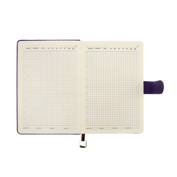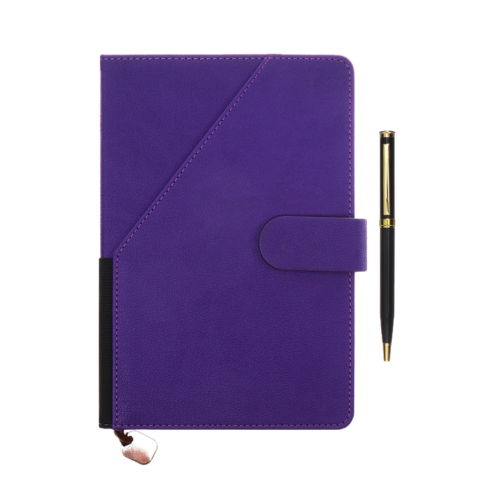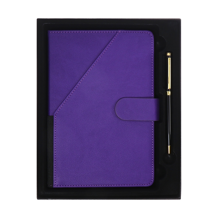 Ежедневник недатированный А5, 140л, клетка, к/зам, с ручкой, в подар. короб., Фиолетовый