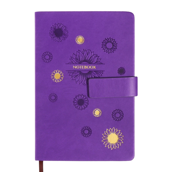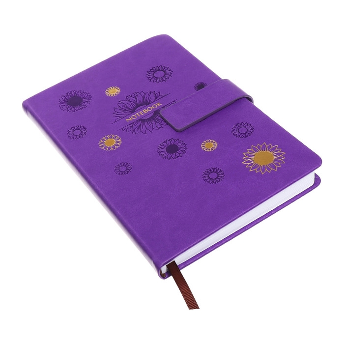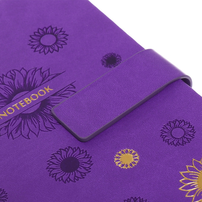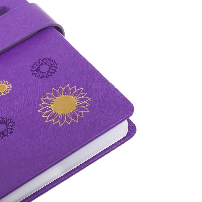 Ежедневник недатированный, А5, 140л, клетка, обл.кожзам, с хлястиком, Цветы, фиолетовый